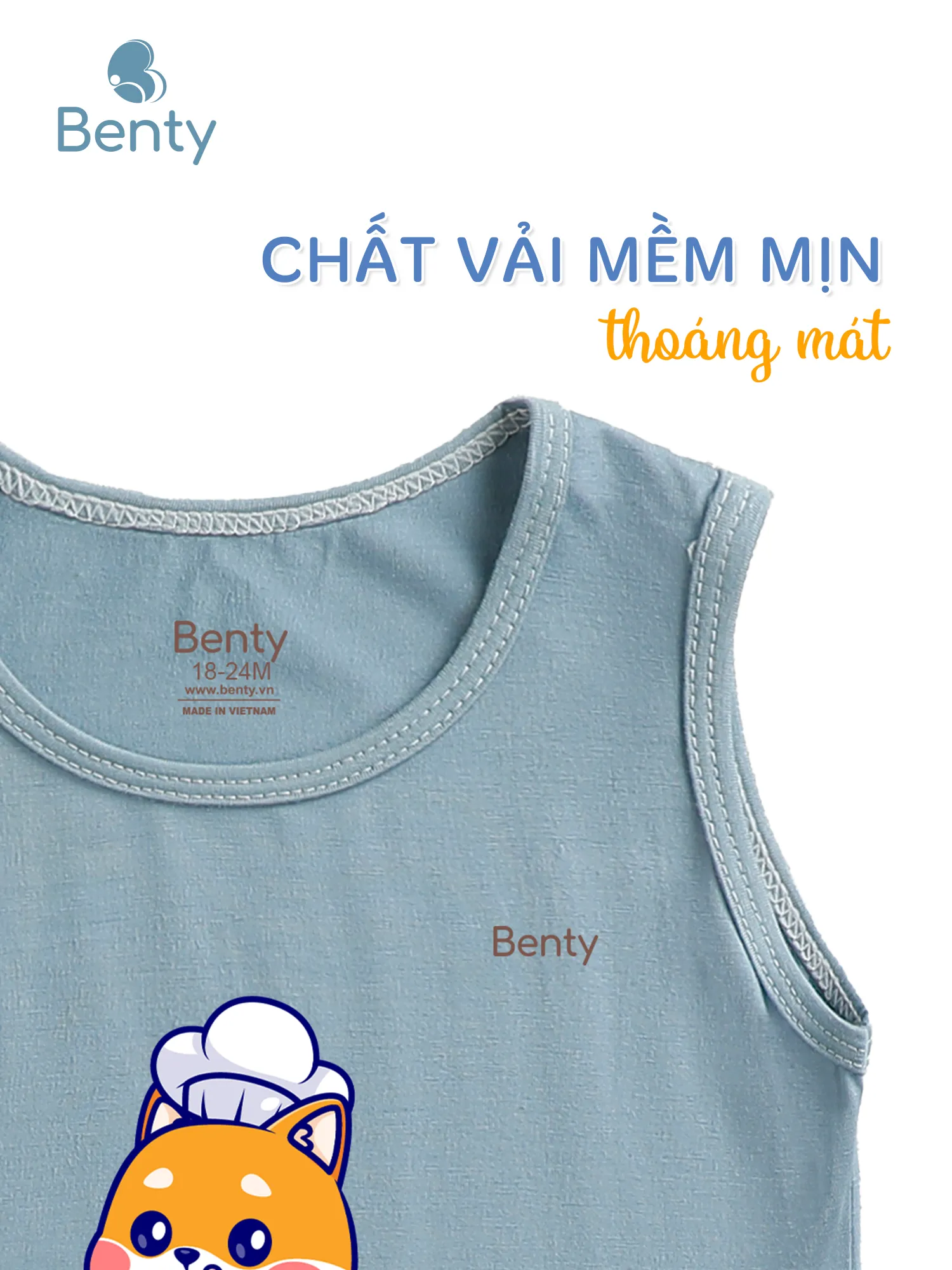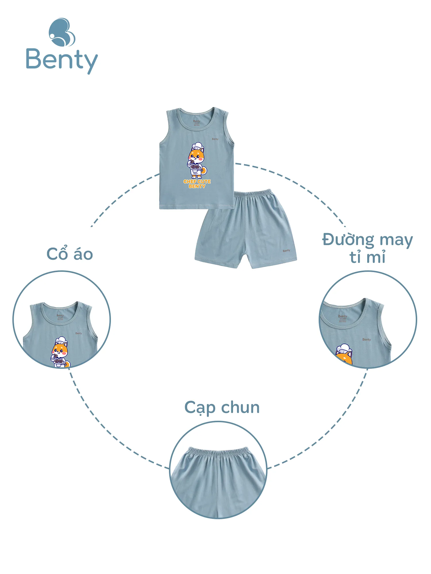 Bộ ba lỗ chú mèo đầu bếp BENTY BT089, quần áo trẻ em bé trai bé gái