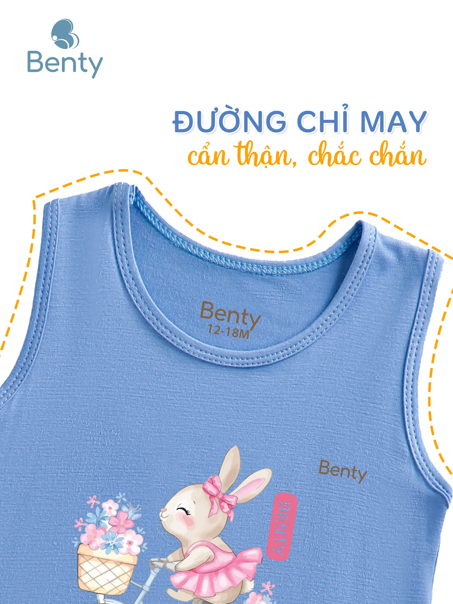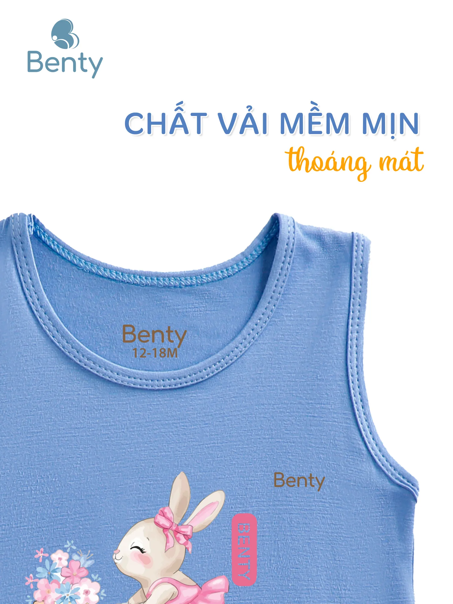 Bộ ba lỗ in hình chú thỏ BENTY BT014, chất vải cao cấp thấm hút mồ hôi