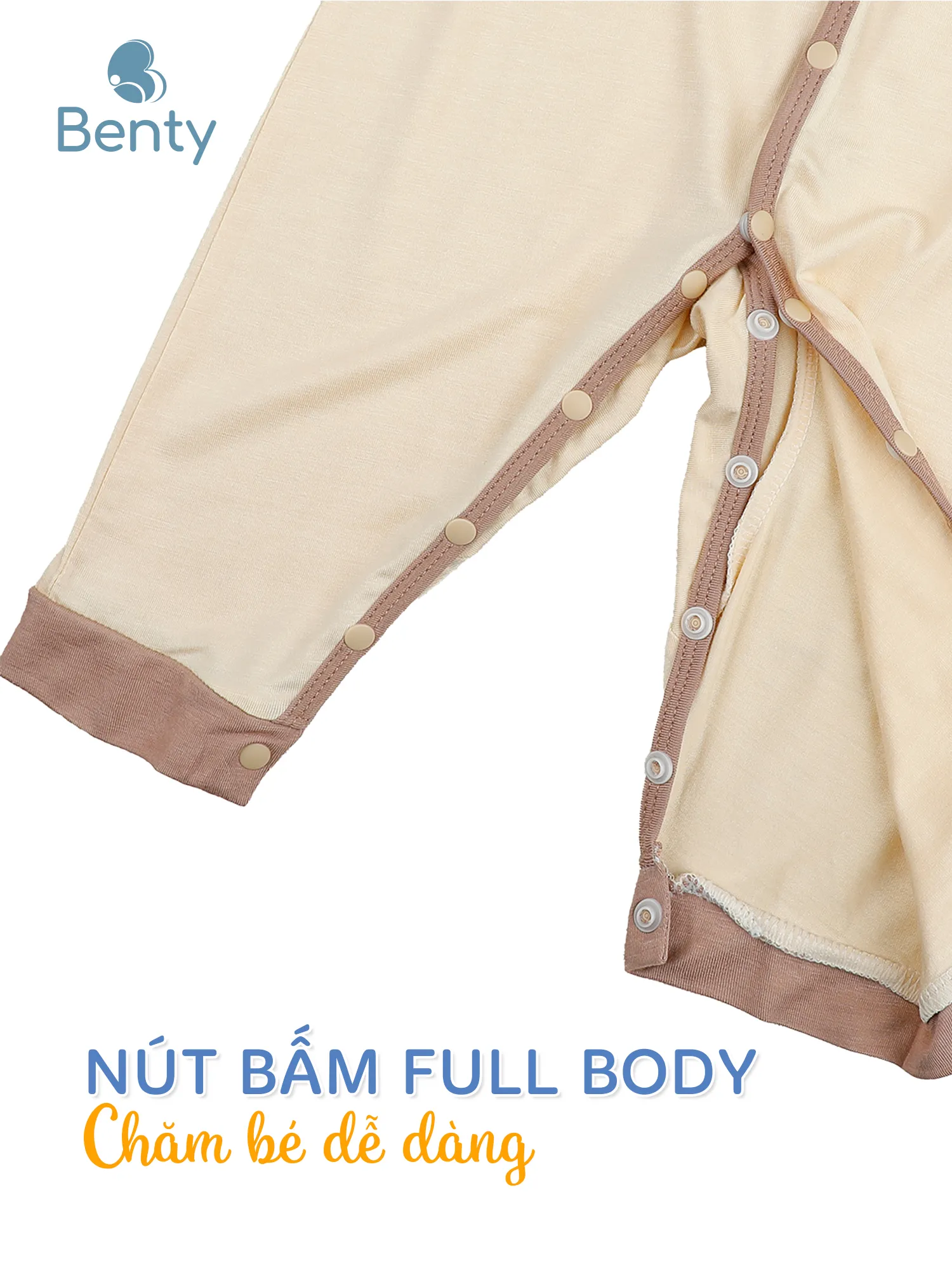 Body dài tay phối viền nền màu be BENTY xinh xắn cho bé